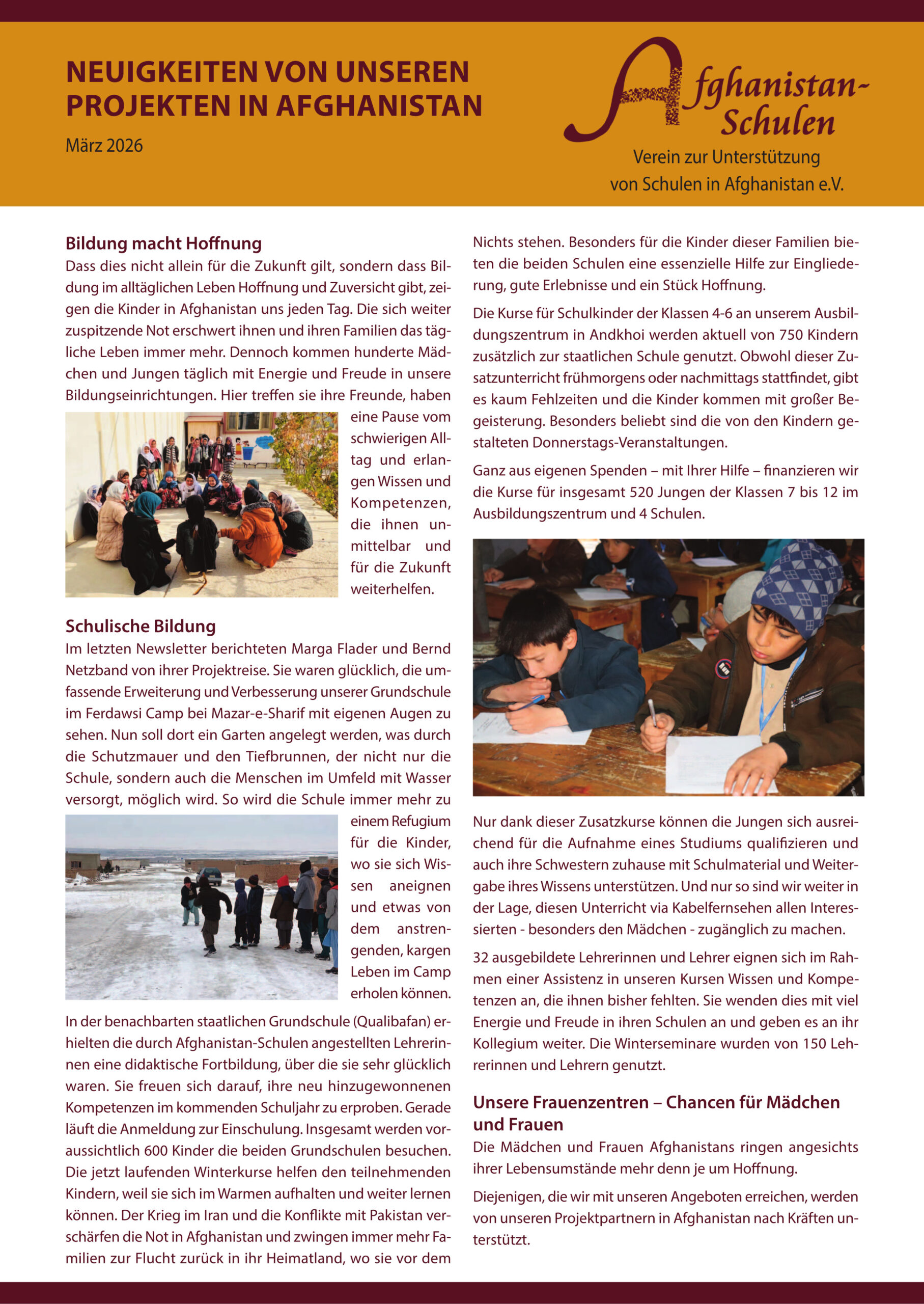 In regelmäßigen Abständen verfassen wir Berichte über unsere Arbeit und fassen dort die Entwicklungen der letzten Zeit zusammen. Den aktuellen Bericht vom März 2026 können Sie hier finden.